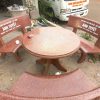 Bàn và ghế làm từ đá mài tự nhiên, bao gồm 1 bàn tròn và 4 ghế 2 mặt