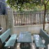 Bàn và ghế làm từ đá mài tự nhiên, bao gồm 1 bàn tròn và 4 ghế 2 mặt
