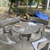 Bàn và ghế làm từ đá mài tự nhiên, bao gồm 1 bàn tròn và 4 ghế 2 mặt